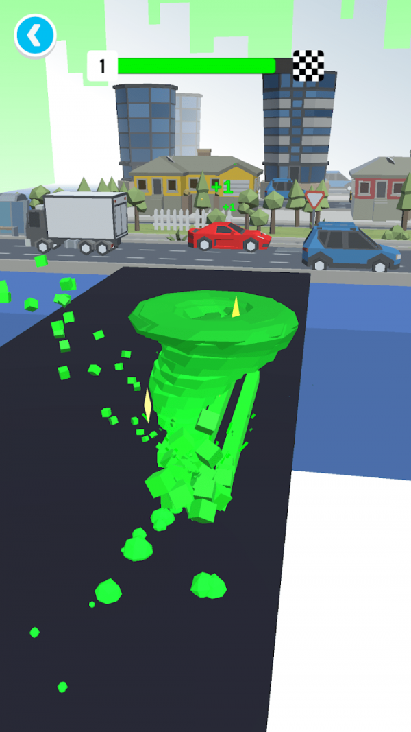 1. 初期阶段:游戏开始,玩家通过操控微型龙卷风,逐步摧毁周围建筑与障碍物,积累实力;